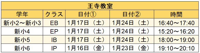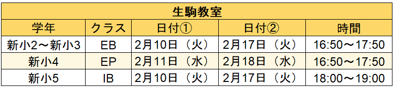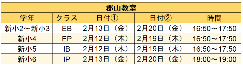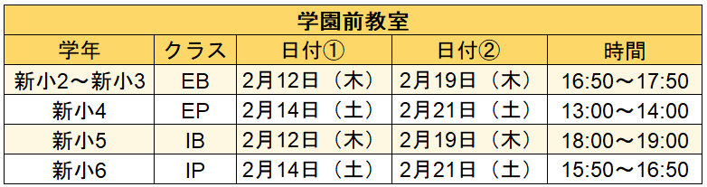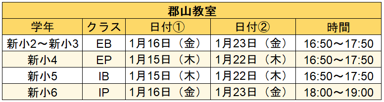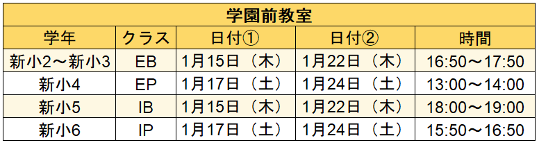 ※クラス・学年表記は目安です。詳しくは教室にお問い合わせください。
