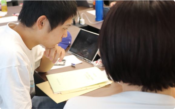一人ひとりとの「対話」を通じて、経験や関心から“問い”を掘り起こし、他の誰でもなく「あなただから書ける」志望理由書へと導いていきます。