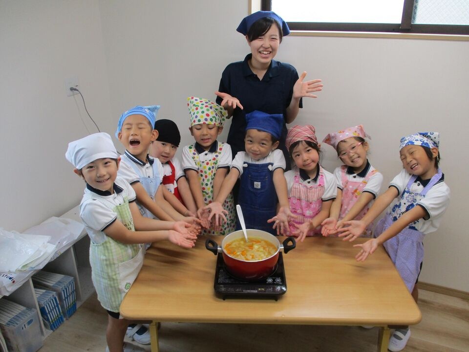出来上がったスープはほかの先生や下のクラスのお友だちに食べてもらい、