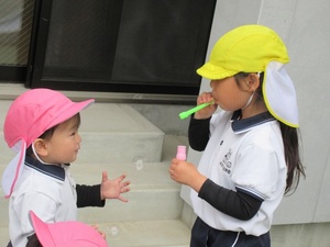 大きなシャボン玉を膨らませてもらったりしながら、とっても嬉しそうでした(^^)