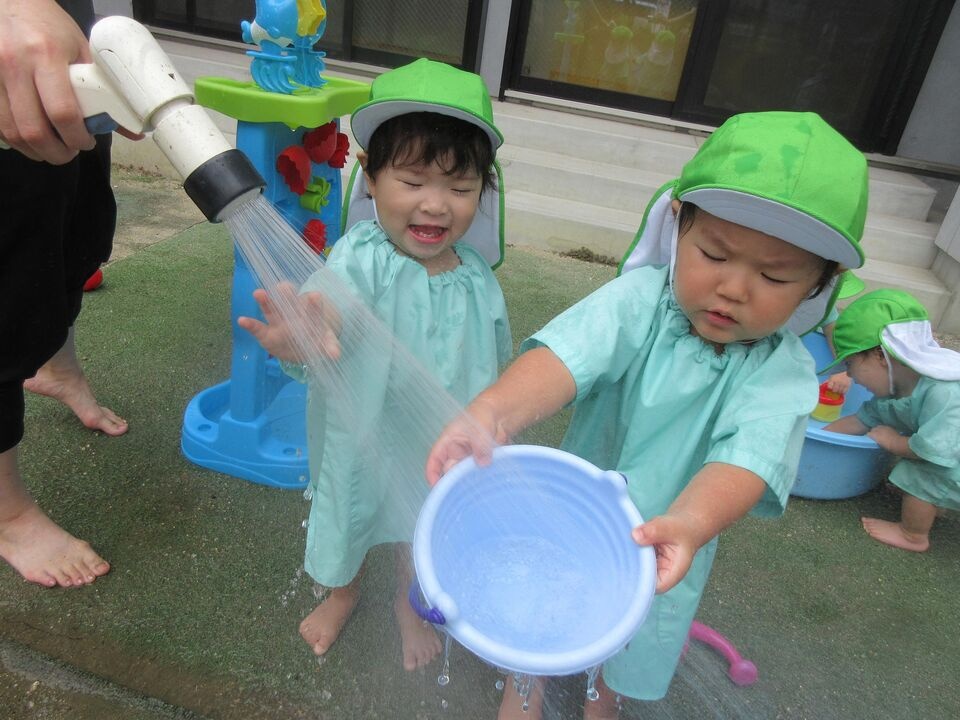 タライにたっぷり入ったお水に手を伸ばしたり、