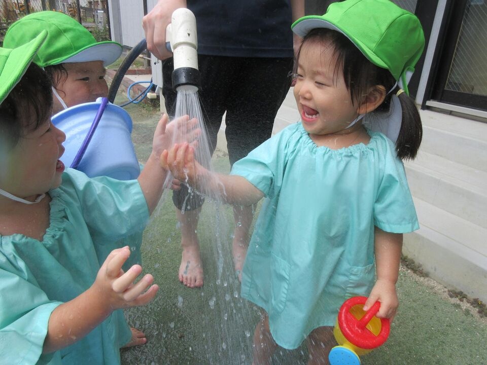 ジョウロを使って「ジャー!」と夢中になってお水を流したりしていました☆