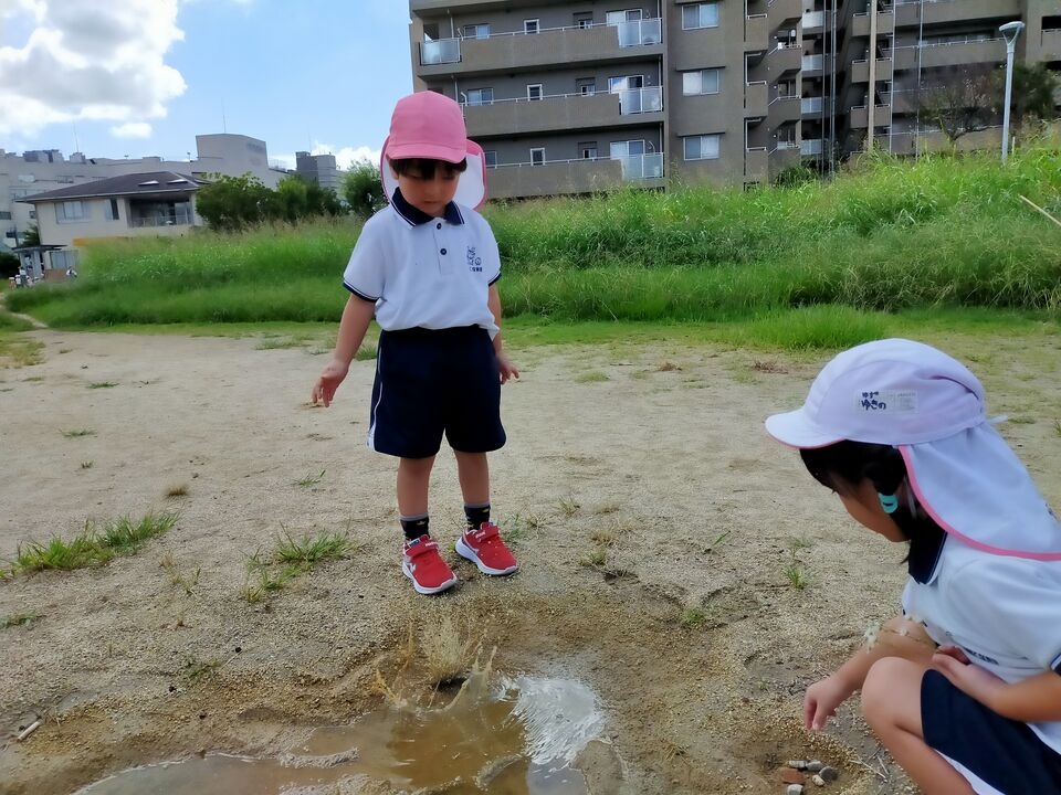 公園では、鬼ごっこをしたり、草をたくさん集めたりして遊びました。