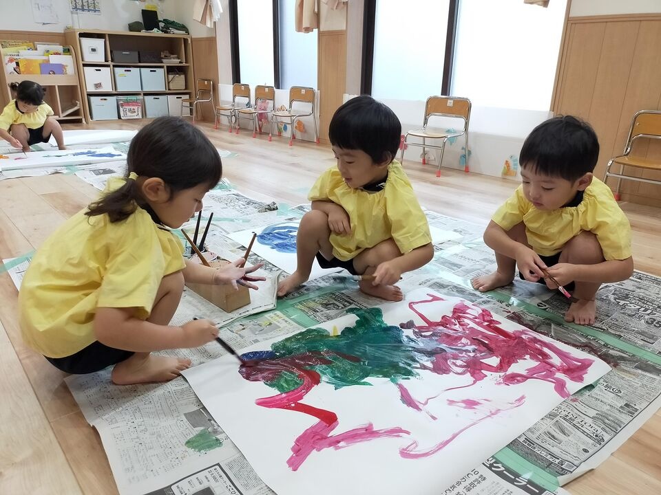 のびのびと筆を走らせたり、ぐるぐると一か所に塗り込んだり、丸を描いてみたり...いろいろな姿がありました☆
