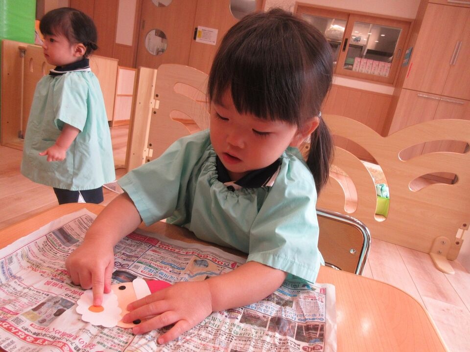 指先にちょこんとのりを付けて、ぺたっ!とのりを伸ばす感触を楽しんでいるようでした☆