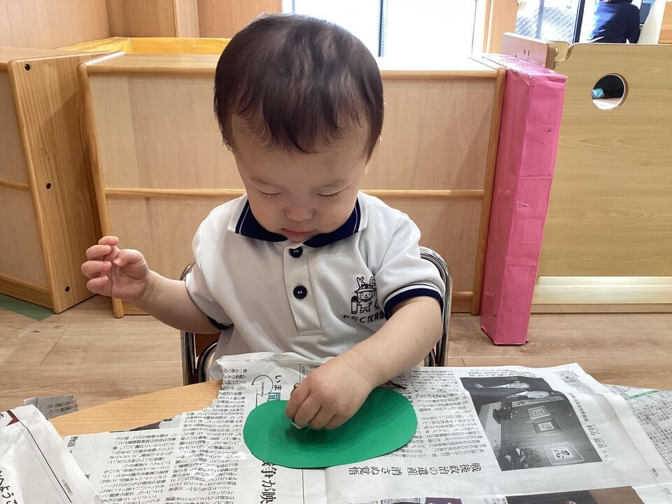 スタンプを押すと星形の模様がつくことに気づき、何度も押してみたり、模様がつく様子をじっと見つめたりする姿が見られました。