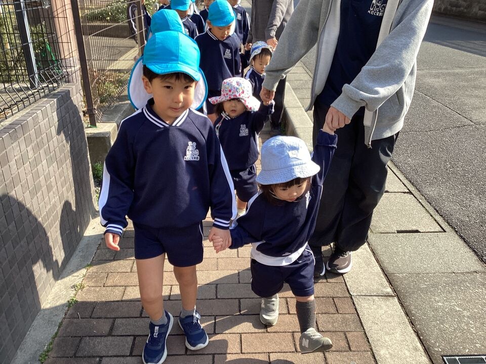 今日は0歳児クラスと5歳児クラスで一緒にお散歩に行きました!