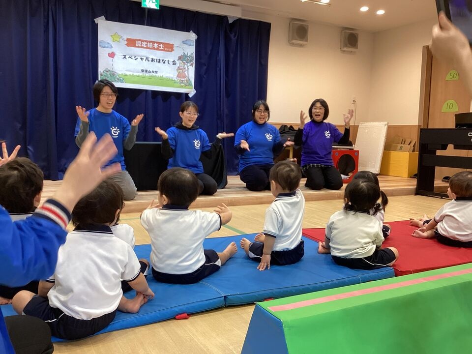 今日は、大学で絵本認定士を目指してお勉強されている学生さんに来ていただき、お話し会に参加しました☆