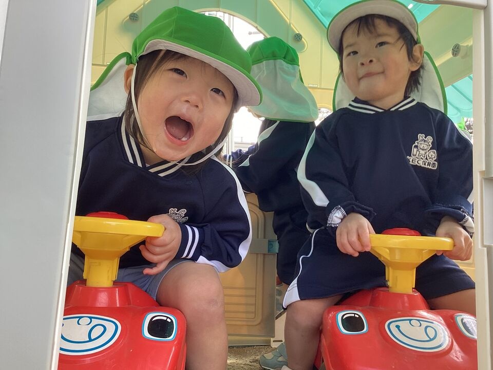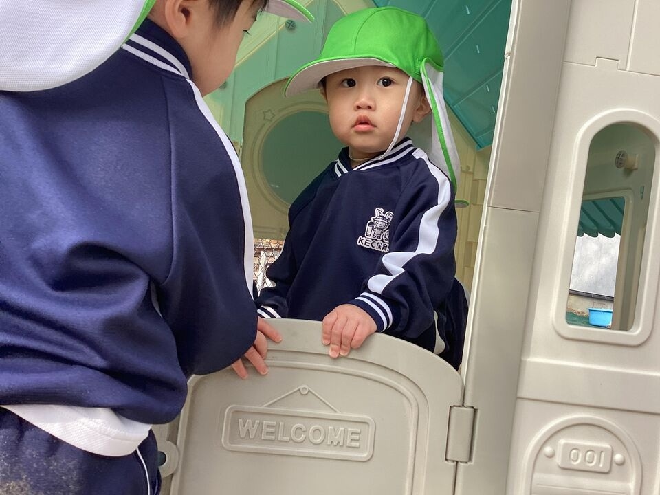 大好きなお家に入ったり、コンビカーをしたり、お砂場遊びをしたり、