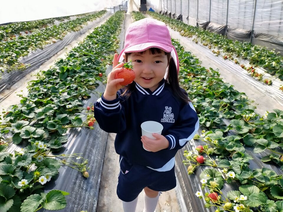 いちご狩りでは、農家の方に教えてもらった通りにあかいイチゴを真剣な表情で選ぶ子や、