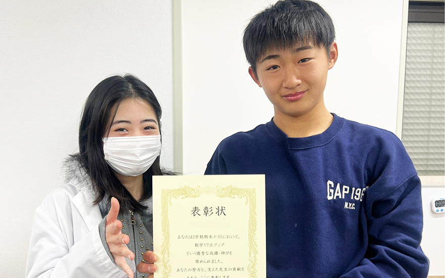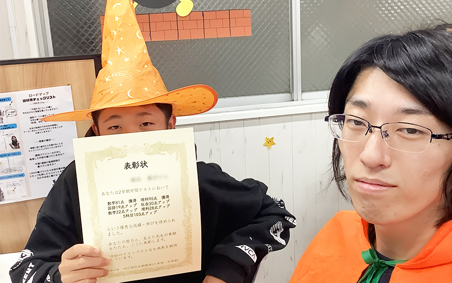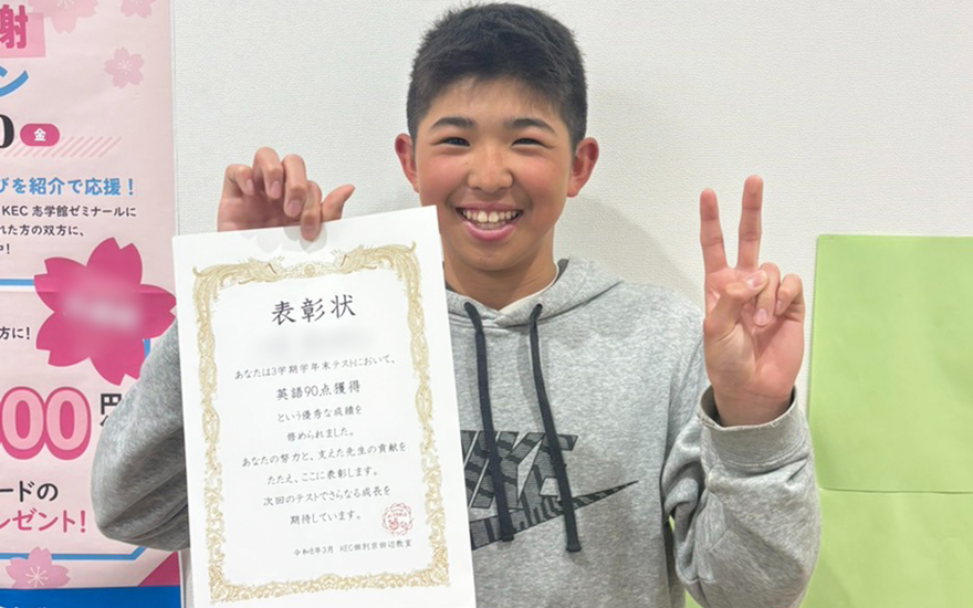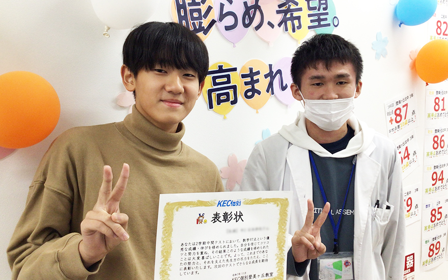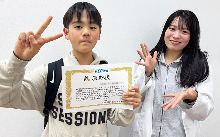KEC個別・KEC志学館個別では、定期テストをはじめとする日々の学習における生徒たちの頑張りを、目に見える「形」にして表彰しています。