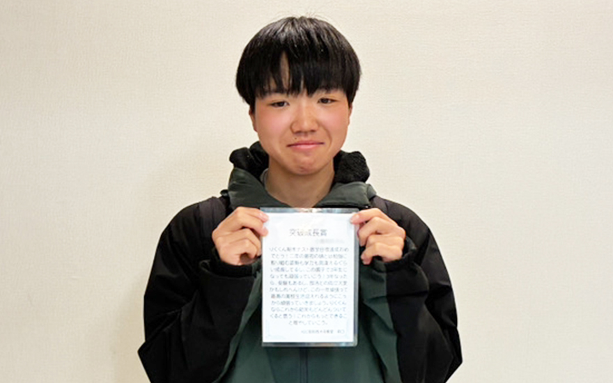 私たちは普段から褒めて伸ばす指導を大切にしています。しかし、言葉だけでなく形に残る証(あかし)を贈ることで、その喜びはより深い自信へと変わります。