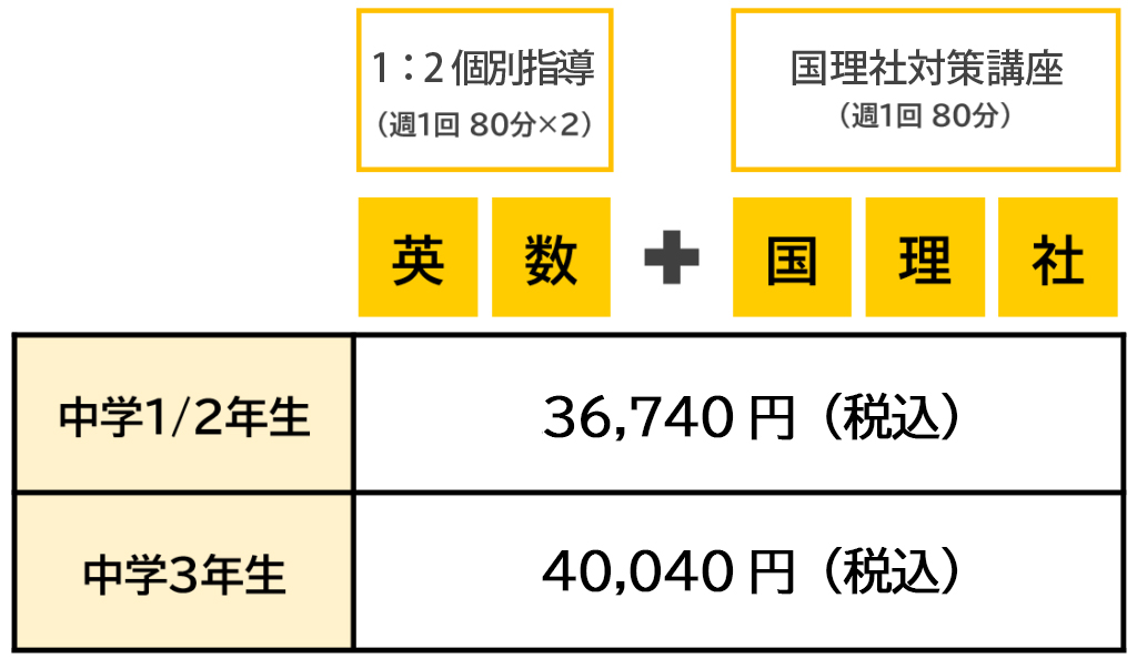 週2回(英語・数学)の個別指導に、「国理社対策講座」をプラスした場合