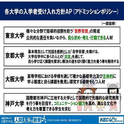 「アドミッション・ポリシー」とは、各学校が出している「入学者受け入れ方針」のこと。