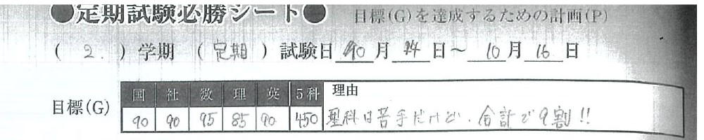 2学期中間テスト対策会のご案内&テストの目標設定!!