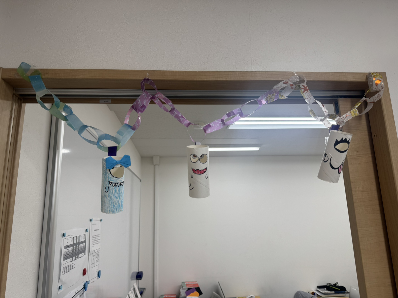 生徒たちは今、どんな仮装をするか、お友達と相談し、協力して教室を飾り付け、