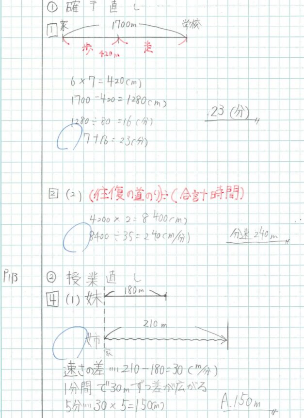↑塾生の解き直しノート。丁寧かつ見やすく書いてくれています。