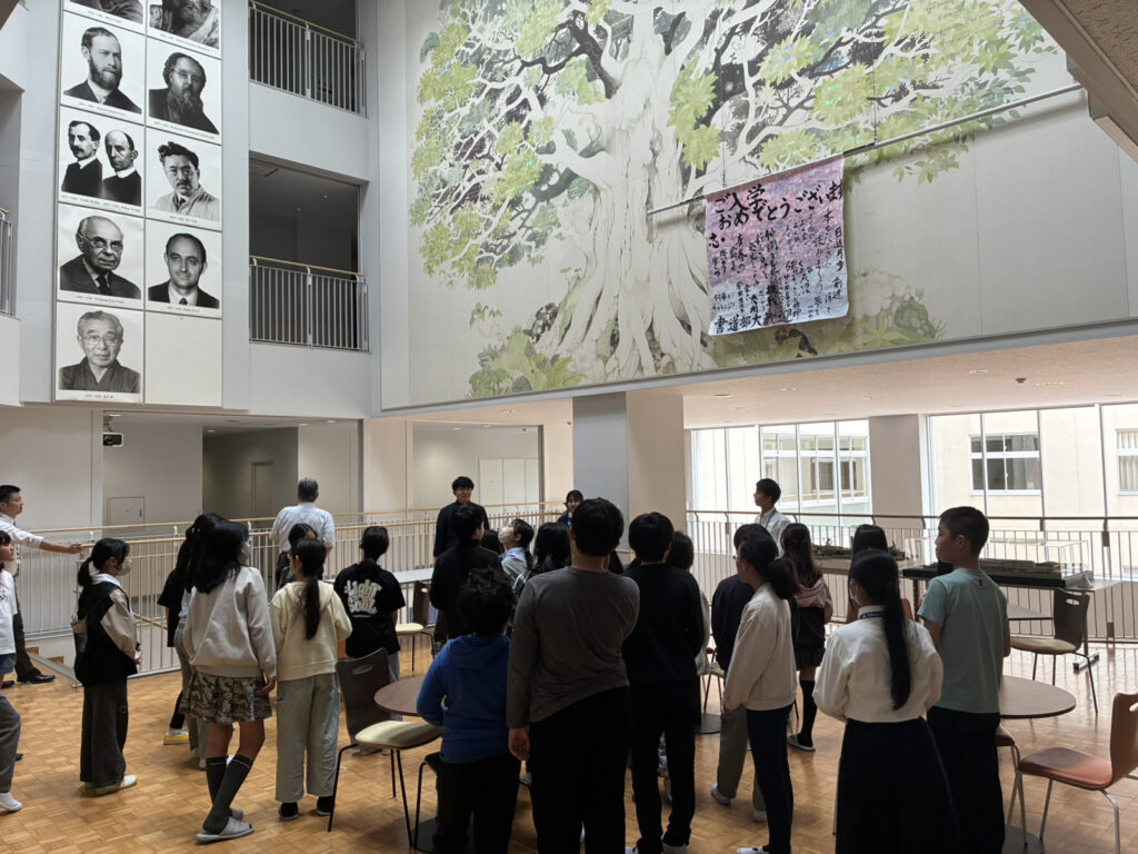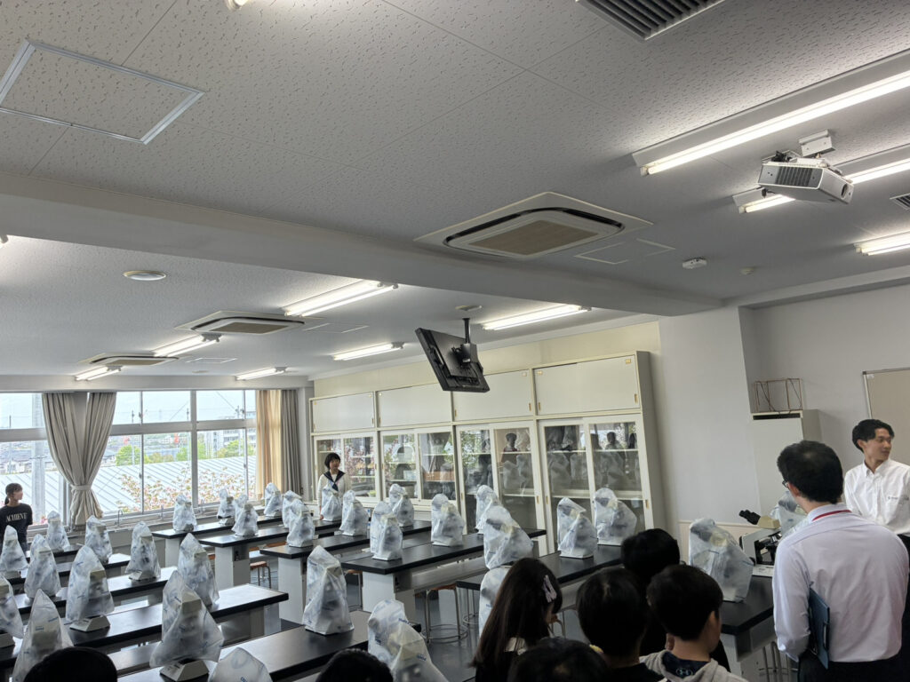 テストを受けた後は待ちに待ったお弁当タイム!保護者の皆様、ご準備いただきありがとうございます。お弁当だけでなく、奈良学園登美ヶ丘中学校・高等学校の学校見学もさせてもらいましたね! 一人1台の顕微鏡のある理科室や、とっても大きな天然芝のグラウンドなど、魅力的な場所がいくつもありました!
