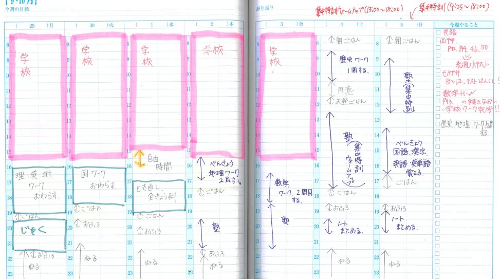 さらに、RM(ロードマップ)を使って来週1週間の学習計画の作成も実施。