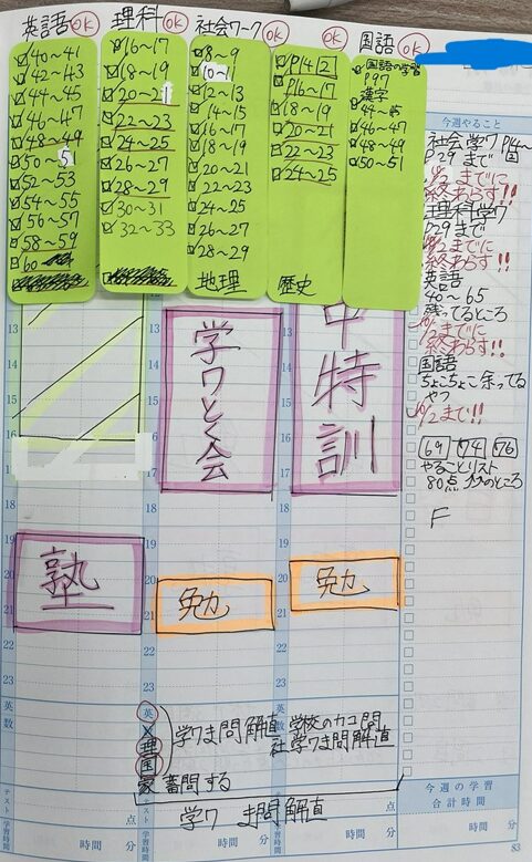 何を・いつまでに・どれだけやるかを事前に明確にすることで、「テスト直前に焦って勉強」という失敗パターンを防ぐことができました。