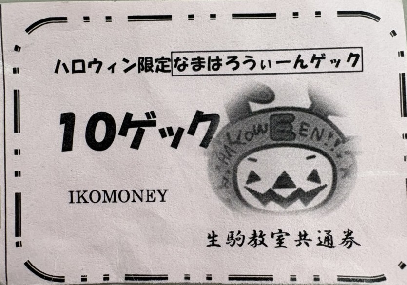 仮装で登校してくれた生徒には、【ハロウィン限定10ゲック(生駒教室ポイントカード)】と、飴ちゃんのプレゼントを配布しました!