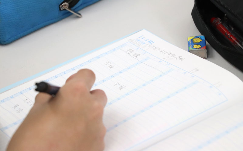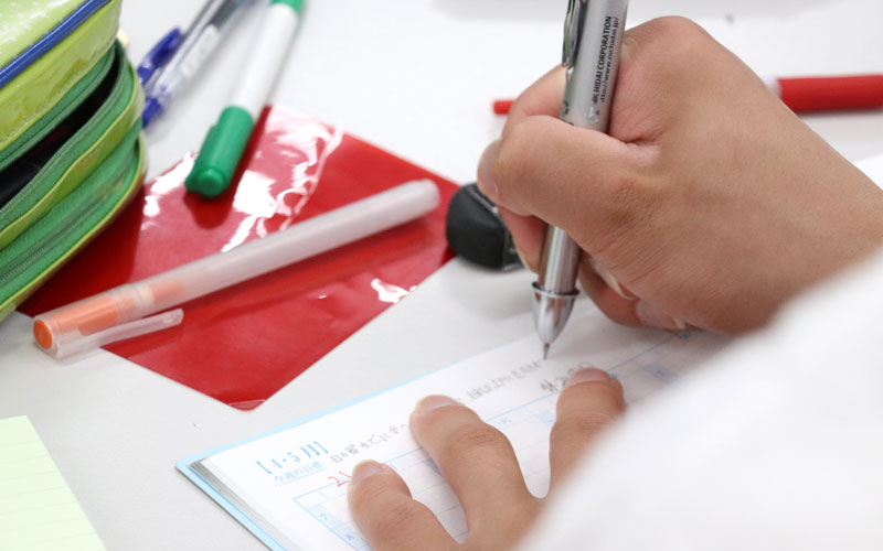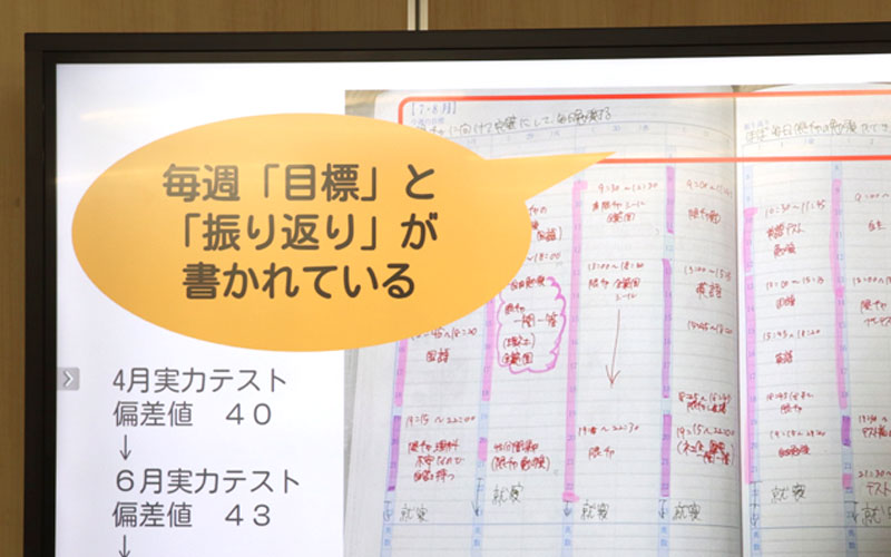 さらに先輩のノート実例を見て、KECオリジナルの学習計画手帳「Road Map」に気づきや改善点を記入していきます。