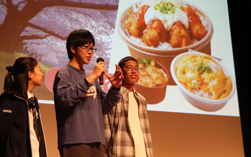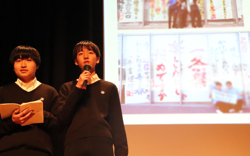 また、スライドでは文化祭やクラスTシャツ制作の写真も映し出され、学校生活の楽しさと活気が感じられる発表でした。