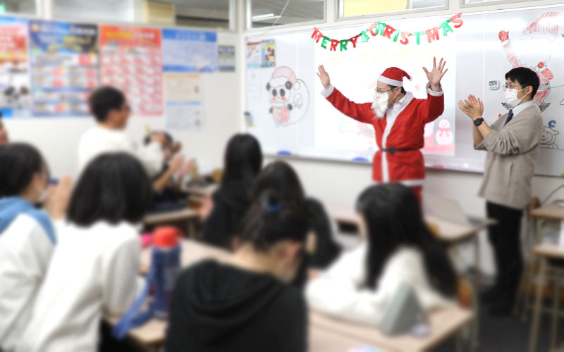 サンタやトナカイの姿で先生が登場すると教室は一気に盛り上がり、 友だちと協力して問題を解いたり、景品がかかったビンゴに一喜一憂したり、教室のあちこちから、笑顔と歓声があふれる時間となりました。