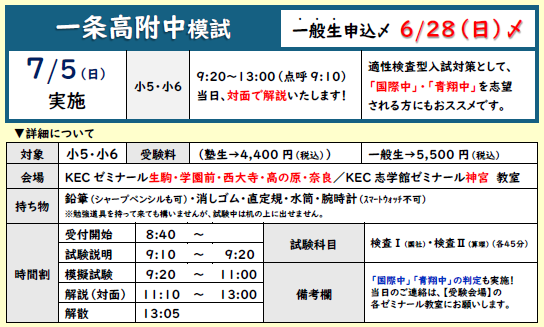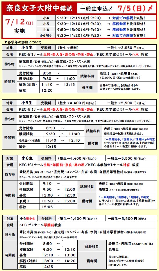 【小4~小6生対象】【小6附小生対象】7月12日(日)