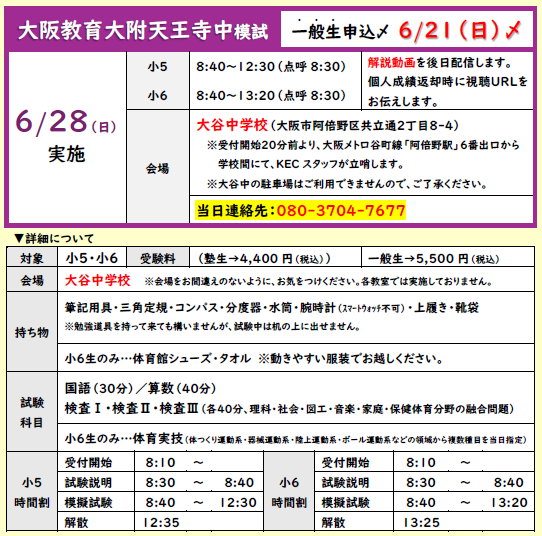- 大阪教育大附天王寺中模試(2026/6/28)について
