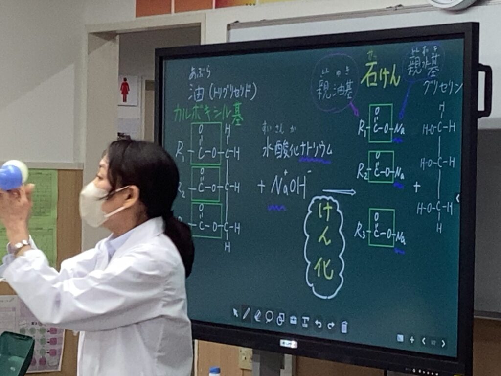 「どうして石鹸で汚れが落ちるの?」という仕組みを学びました。