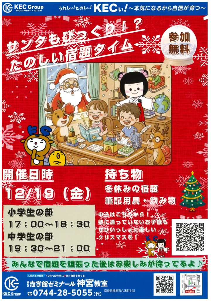 神宮教室ではわくわく楽しみながら勉強をする『サンタもびっくり!?たのしい宿題タイム』🌟を開催いたします!