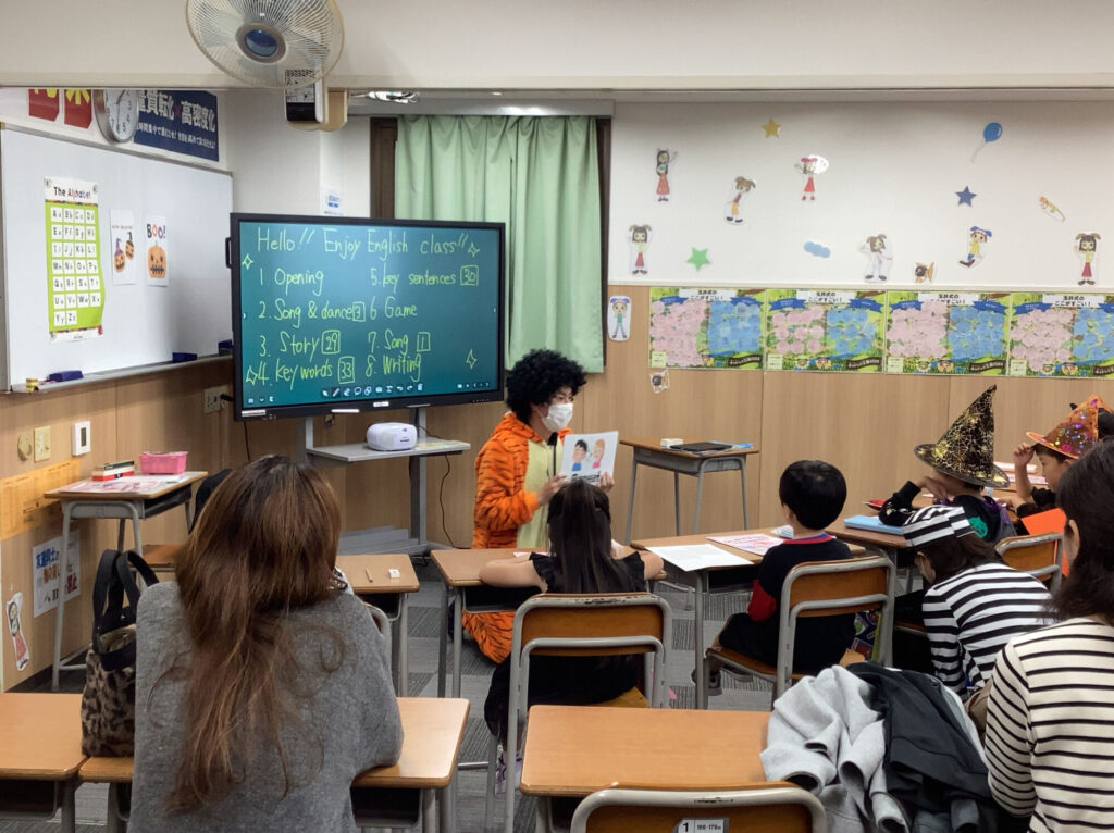 この授業では、時計の読み方などの小学生になる前に覚えておきたいことに触れたり、英語の歌に合わせて体を動かしたりと、すべてが「楽しい遊び」からスタートします。