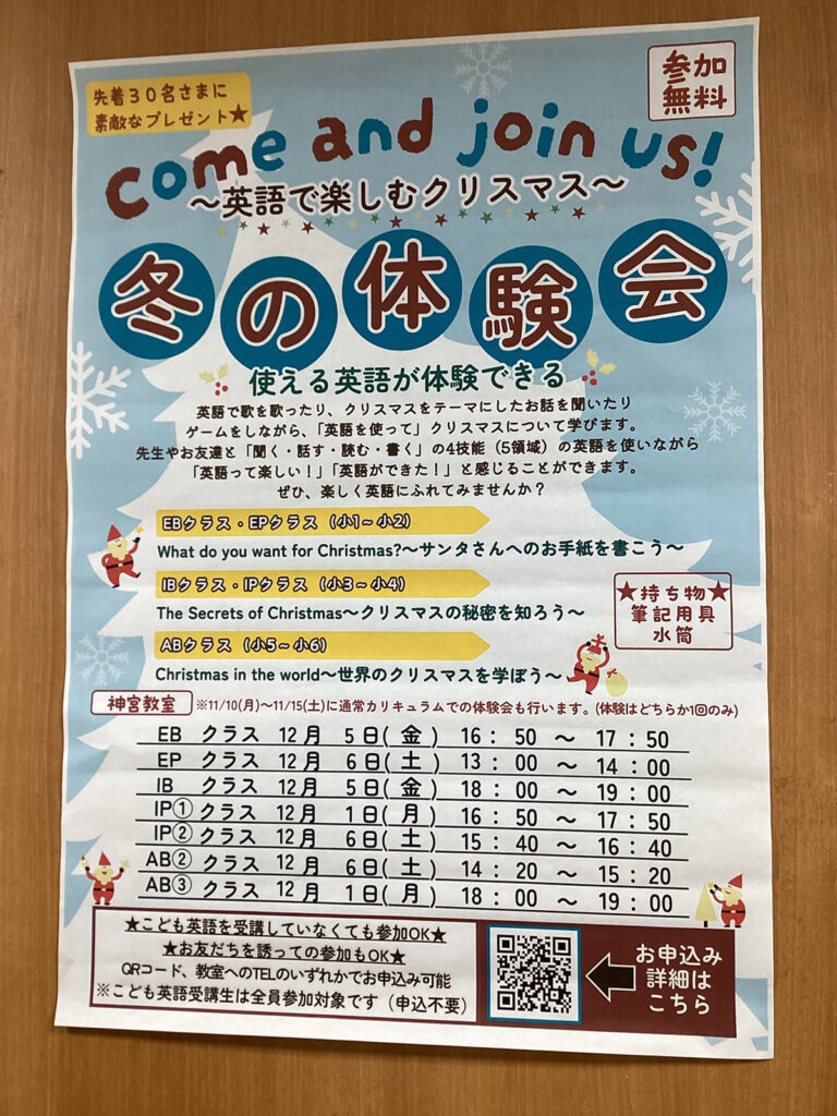KECこども英語教室では、もうすぐ楽しいクリスマス会を企画しています!ゲームやアクティビティを通して、楽しく英語に触れる絶好の機会です。