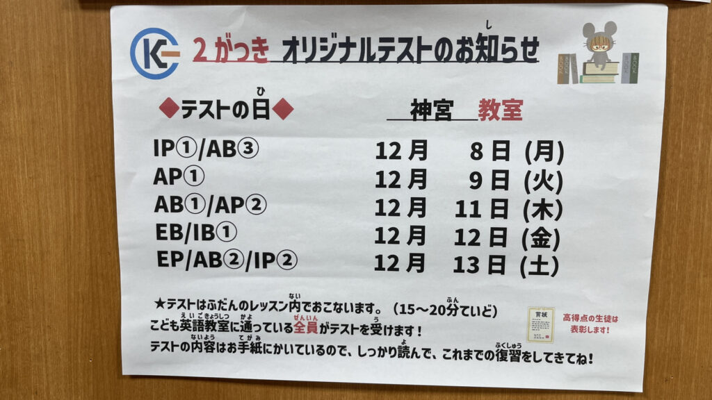 また、日々の頑張りの成果を確かめるオリジナルテストも近づいてきました。ドキドキするけど、自分の成長を実感できるチャンス!先生たちも全力でサポートします!