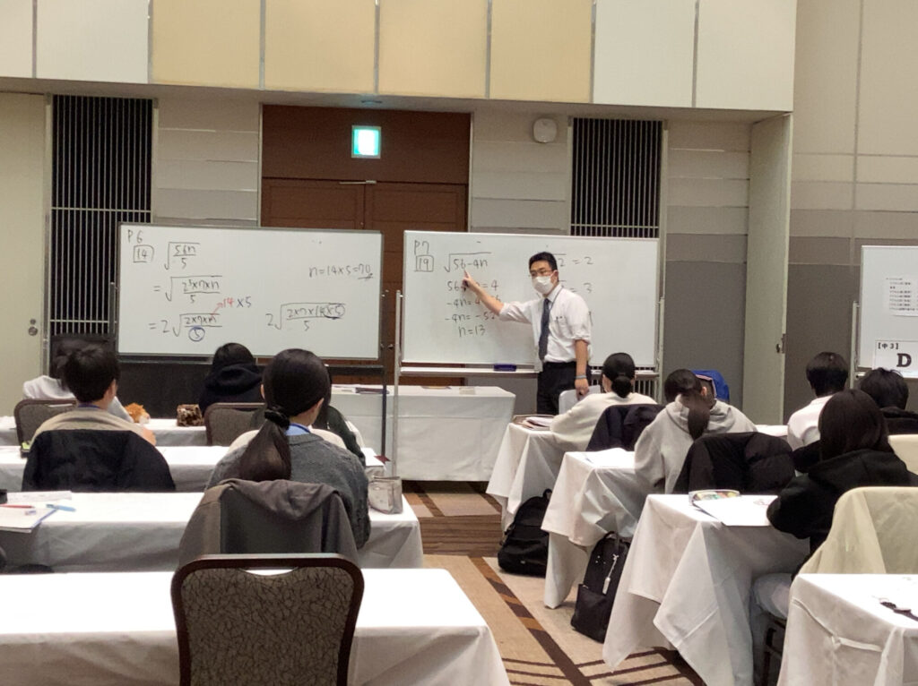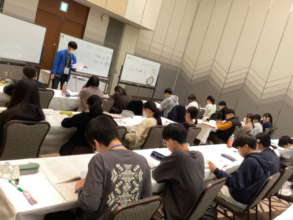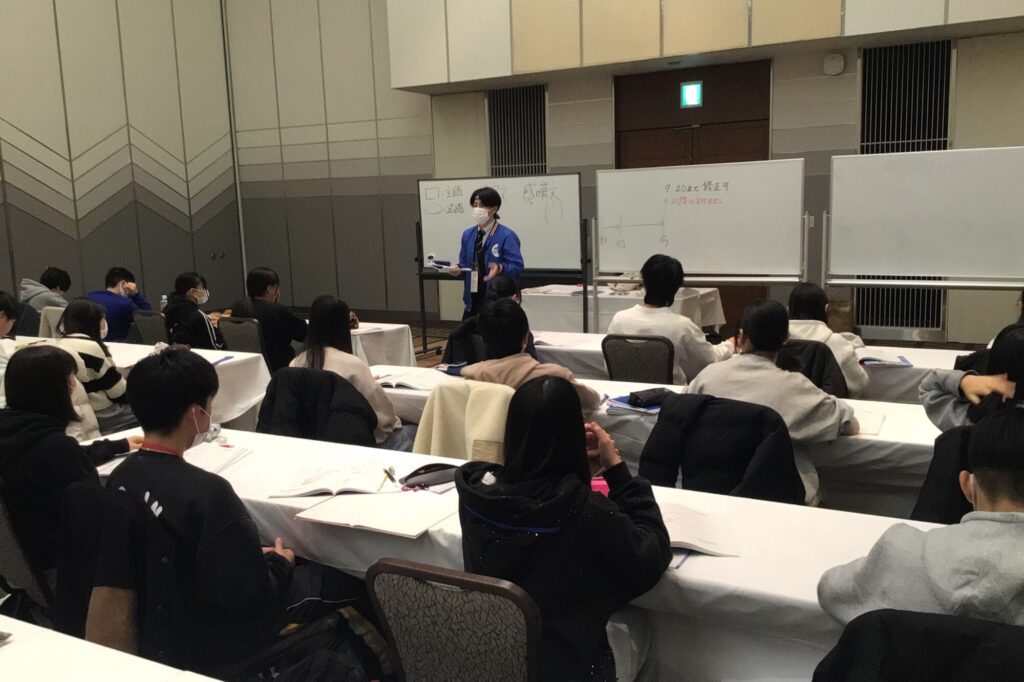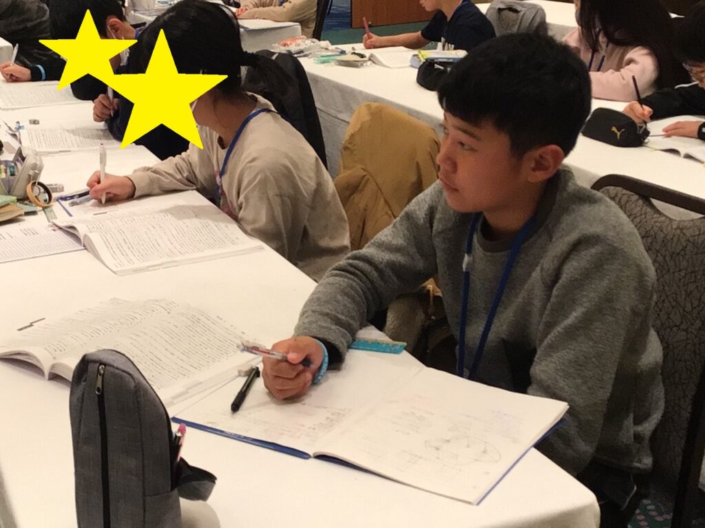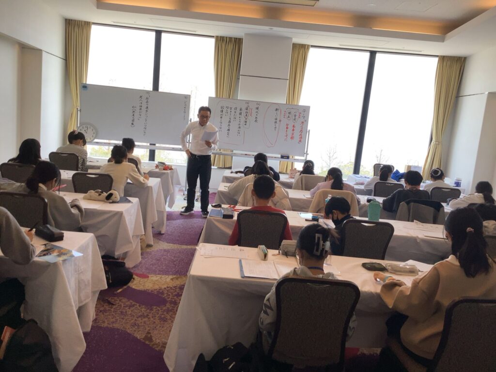 合宿が始まった当初は少し緊張気味だった生徒たちも、時間が経つにつれて目の色が変わり、ペンを走らせる音だけが響く集中した空間ができあがりました。