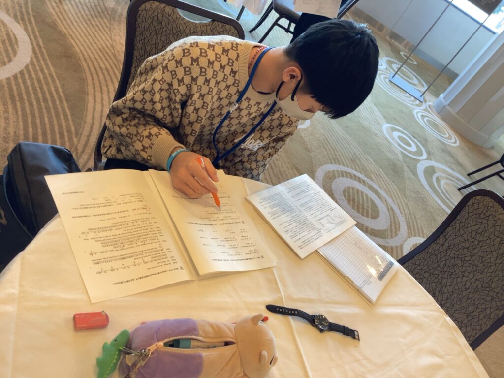 この合宿に参加できること、勉強に打ち込める環境があること、そしていつも一番近くで応援してくれている家族の存在。