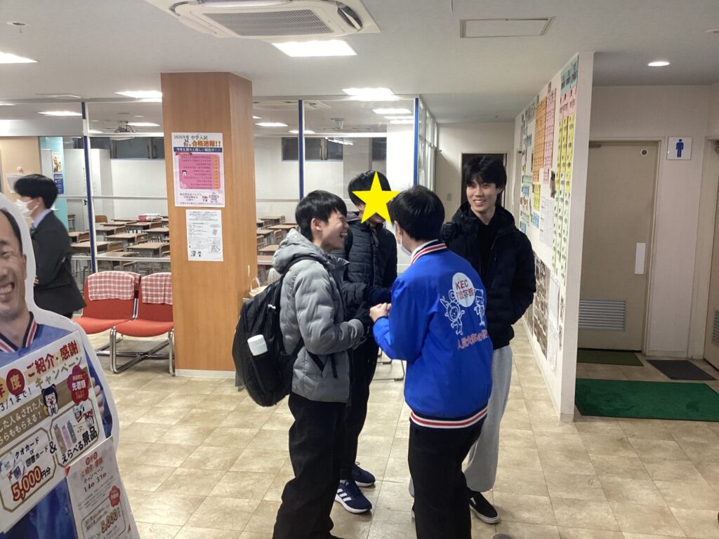 さらに、受験に向けて自習中の中3生が参戦して、中1生に「内申を上げること、定期テストで点数を取ること、そのためにとき直しの重要性」を熱く語ってくれました。