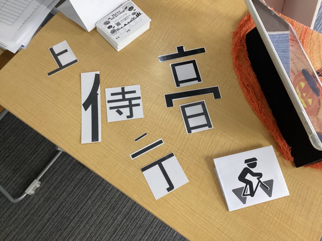 Qestion:写真にある漢字や部首を組み合わせることで、ある4文字の漢字を作ってください。右下のイラストは、完成した漢字に関係する、ちょっとしたヒントです。