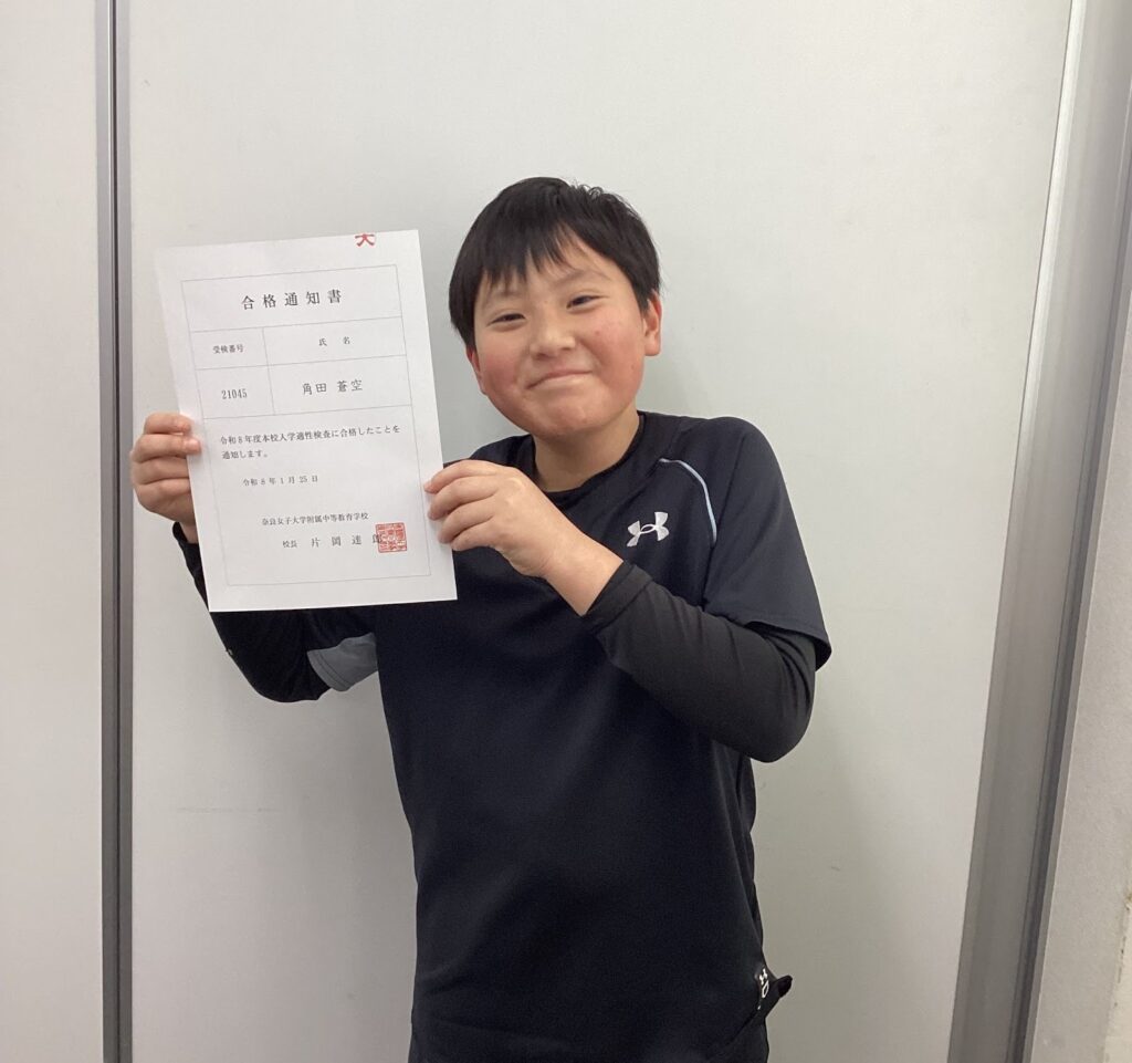 最高の状態で迎えた入試本番。練習で受験した奈良学園、そして本命の奈良女子大附属中、ともに合格を掴み取ることができました。