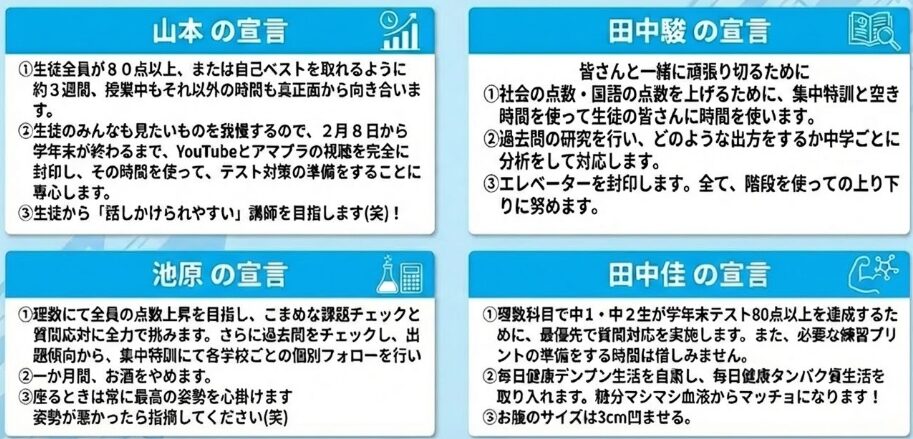 今回の「学年末大作戦」では、講師からも明確な宣言をしました。