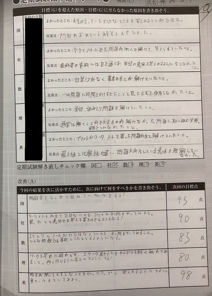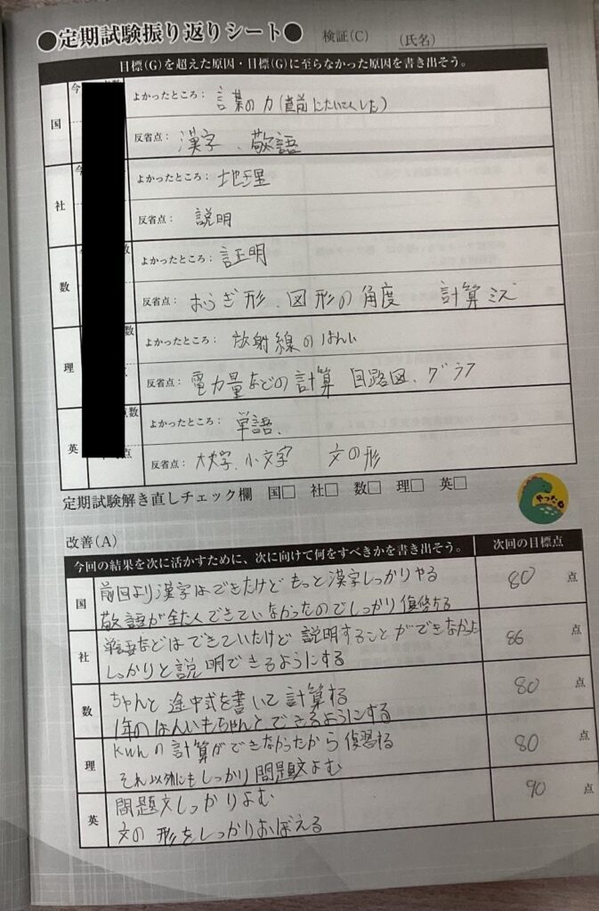 2学期期末の振り返りをしっかり行っているのが素晴らしいですね!
