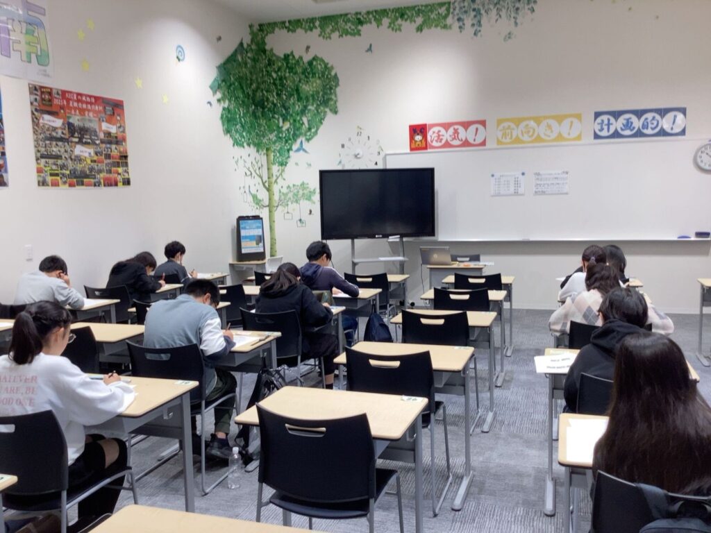 翌日の11月9日(日)には、中学生を対象とした2学期期末テスト集中特訓を行いました。内申点に直結する定期テストは、生徒たちにとって非常に重要な意味を持ちます。参加した生徒たちは、それぞれの目標点達成に向け、高い集中力で学習に取り組んでいました。