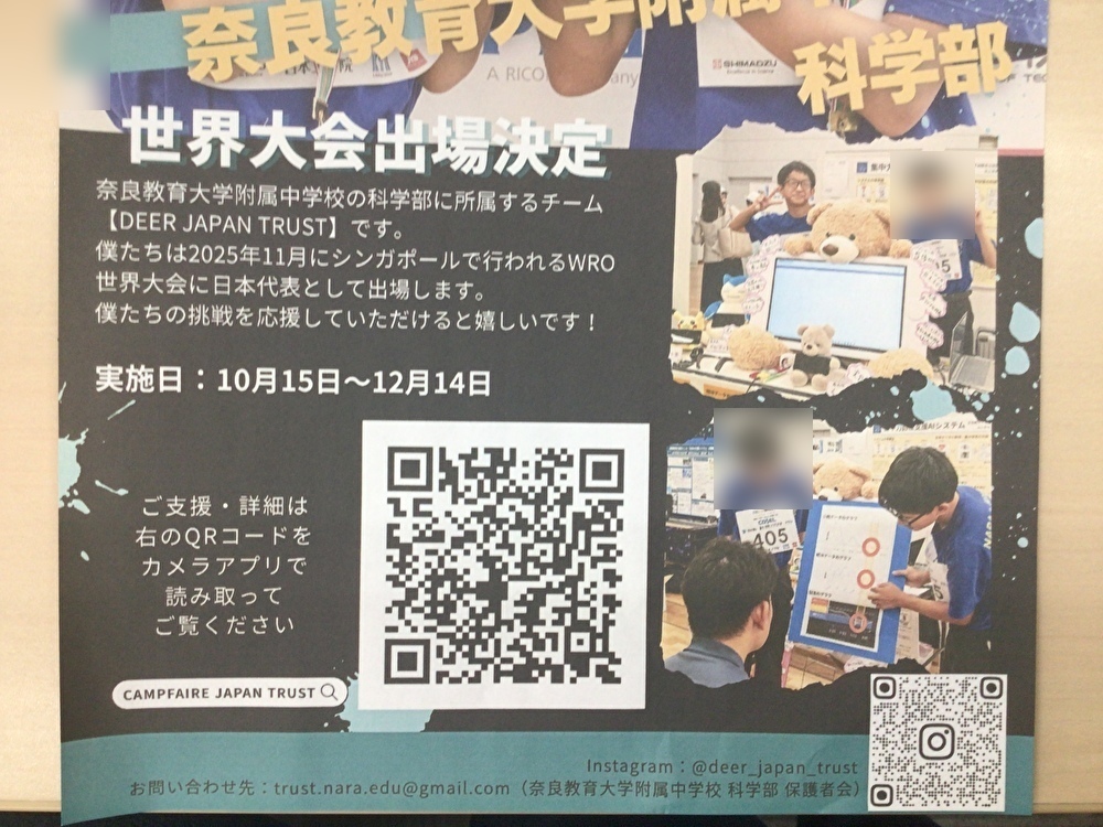 現在、此上くんが通っている中学校ではクラウドファンディングを実施しており、本人からも「紹介してほしい」という声をもらったので、この場を借りて紹介させていただきます。