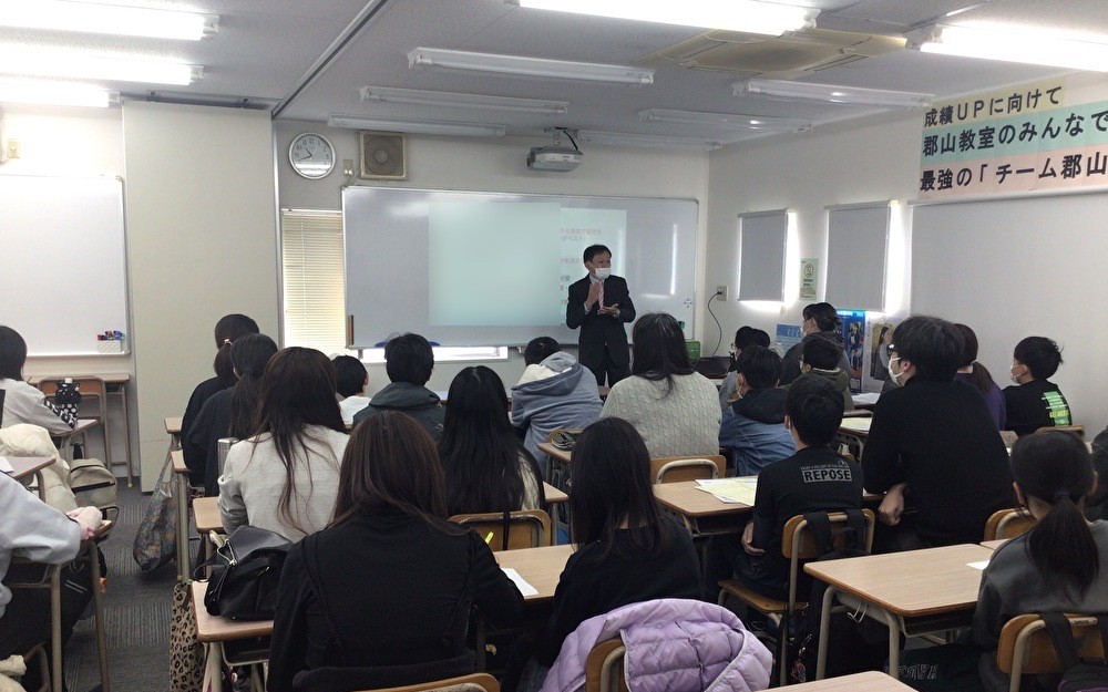 入試本番に向けて、最新の情報やこれからの学習スケジュールについて、真剣な表情で話を聞く生徒たちの姿がとても印象的でした。