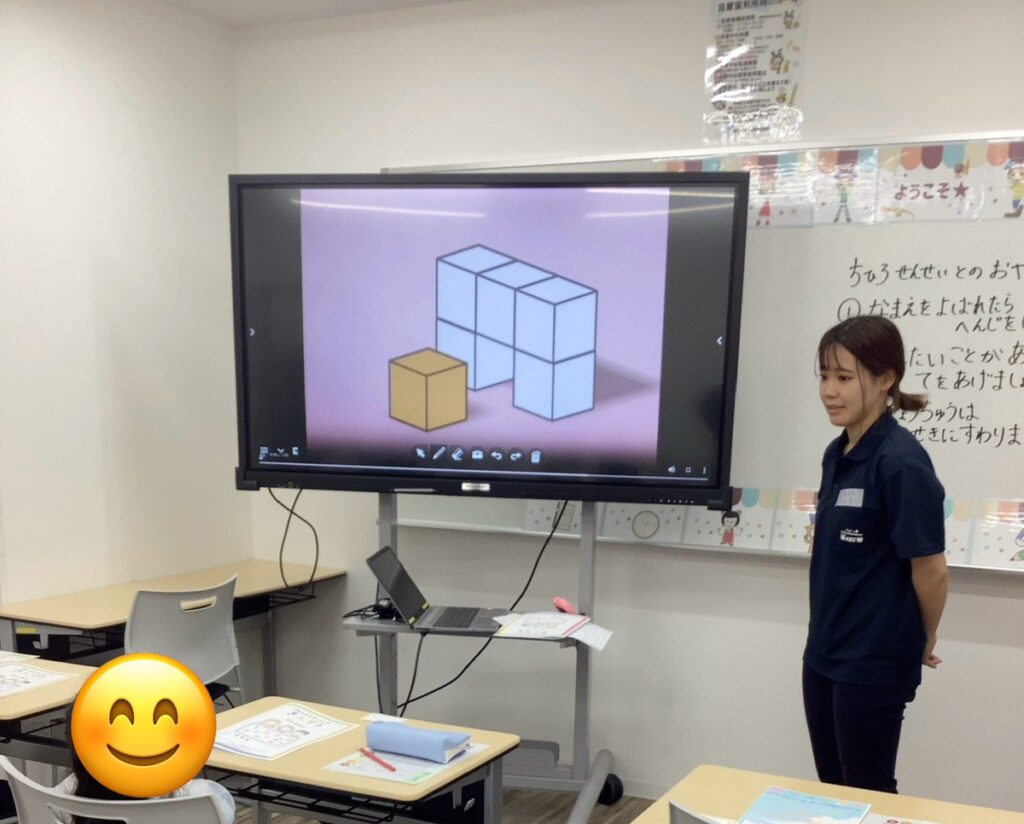 ↑今回は図形のアニメーションを見ました。「かくれたつみき」を見つけたね!