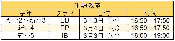 | 対象学年 | 新小2~新小6 |