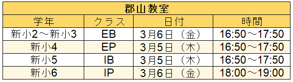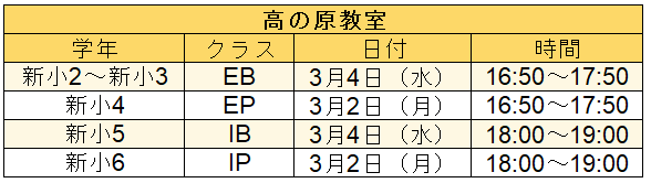 ※クラス・学年表記は目安です。詳しくは教室にお問い合わせください。