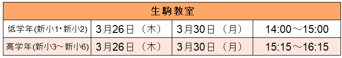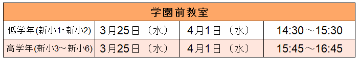 | 対象学年 | 新小1~新小6 |