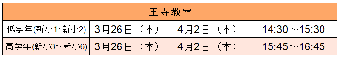| 持ち物 | ・えんぴつ ・消しゴム ・赤えんぴつ ・お飲み物(必要な方) |